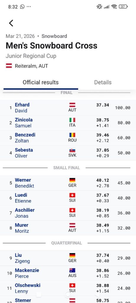 Fine settimana intenso per la squadra di Snowboardcross impegnata a Reitelarm, in Austria, per le gare FIS – National Junior Championship. Due giornate di competizioni che hanno messo alla prova gli atleti in un contesto molto competitivo. Nel primo giorno di gara, grande prova di Samuel Zinicola, capace di conquistare la 2° posizione grazie a una conduzione pulita e a