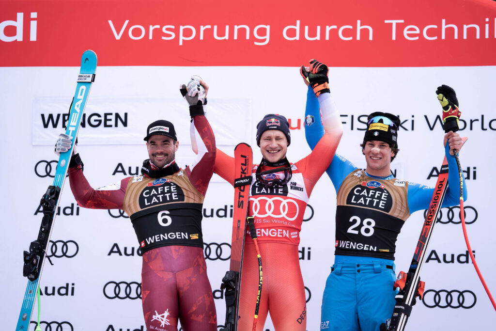 Due importanti conferme nella classica discesa di Wengen, accorciata di una quarantina di secondi a causa del vento che ha costretto ad abbassare la partenza. La prima è che Marco Odermatt non sbaglia mai due gare di fila e così il fenomeno nidvaldese dello Ski Club Hergiswil ha centrato la quarta vittoria consecutiva sul traguardo della pista del Lauberhorn con una prestazione sontuosa, chiudendo la gara in 1’,33”,14/100. La seconda però è che Giovanni Franzoni ormai è entrato in una nuova dimensione: il ventiquattrenne finanziere gardesano, partito con uno scomodo numero 28, quando la pista presentava già non poche sconnessioni del terreno, si è piazzato terzo a 90/100 dal campionissimo svizzero, ma per buona parte del percorso è stato sufficientemente vicino a Odermatt. In mezzo a loro un altro grande come il veterano trentaquattrenne austriaco Vincent Kriechmayr del TVN Wels, secondo a 79/100 dal vincitore. Molto bene anche Dominik Paris: il carabiniere della Val d’Ultimo è giunto sesto a 93/100 e solo 6/100 dal podio di Franzoni. A chiudere i primi dieci c’è un campione a cui l’Italia dovrebbe fare un monumento per la sua costanza e il suo esempio, il quarantunenne finanziere altoatesino Christof Innerhofer, staccato di 1”,47/100 e ben deciso a giocarsi le sue chance per la quinta convocazione olimpica consecutiva. Prova positiva anche per l’altro carabiniere altoatesino Florian Schieder, dodicesimo, ma anche per il giovane valdostano Benjamin Jacques Alliod del Centro Sportivo Esercito, ventitreesimo. Gara sotto tono invece per il poliziotto valsusino Mattia Casse, ventottesimo a 2”,22/100. Non è arrivato al traguardo, a causa di un grave errore alla Kernen-S il canellese di origine Guglielmo Bosca del Centro Sportivo Esercito.