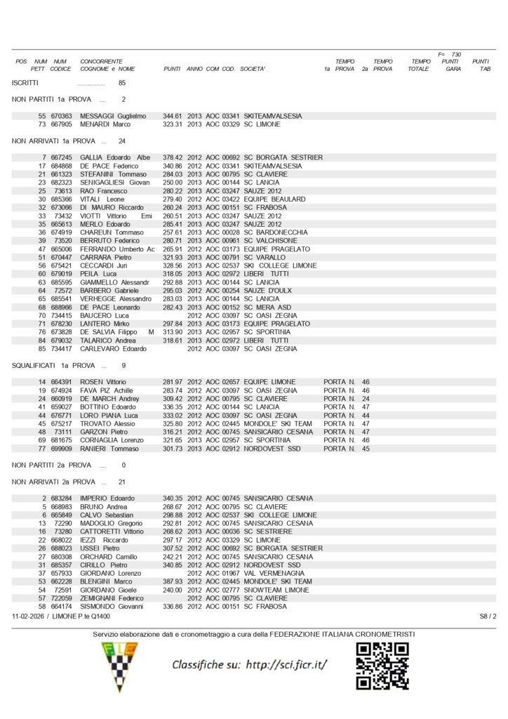 Mercoledì 11 febbraio a Limone Piemonte si sono concluse le selezioni regionali in vista del Trofeo Pinocchio sugli Sci, in programma nel mese di marzo all’Abetone. Gli Allievi hanno gareggiato nel Gigante organizzato dall’Equipe Limone in collaborazione con lo Ski College Limone sulla pista Alpetta. Successo in campo maschile di Felix Baldi dello Sci Club Sestriere con il tempo totale