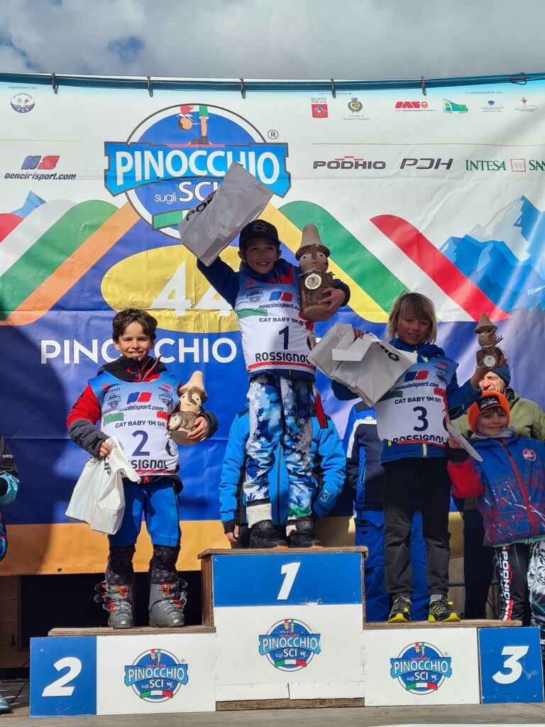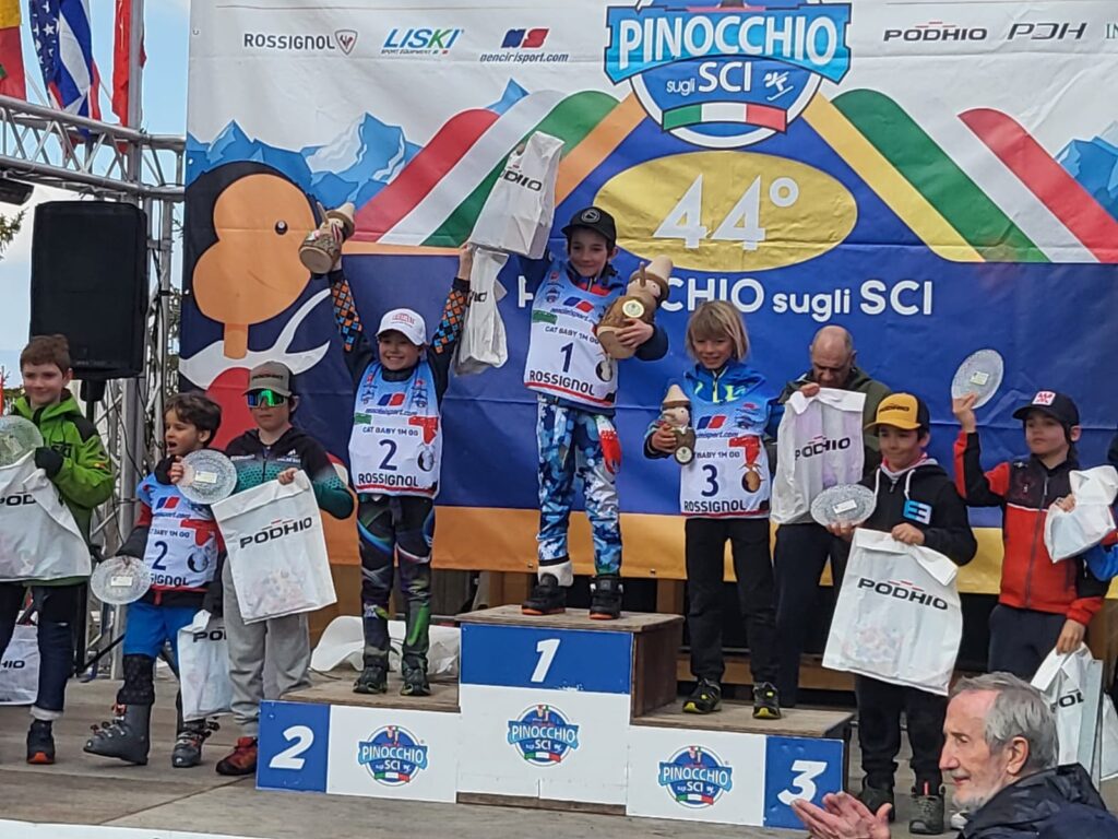 La fase nazionale della 44ª edizione del Trofeo Pinocchio sugli Sci è iniziata sabato 7 marzo all’Abetone con il Gran Gigante delle categorie Baby. Sulla pista Stadio da Slalom erano impegnati i Baby 1 Under 9 del 2017. In campo femminile prima Ginevra Taricani del SAI Napoli con la somma dei tempi della gara 1 e della gara 2 che ha dato il risultato di 1’,42”,97/100. Al secondo posto Gaia Sereno dello Sci Club Bardonecchia, al quarto Giovanna Bocchiotti dello Sci Club Sestriere, al sesto Vittoria Forlani del Mondolè Ski Team, al settimo Vittoria Perotto dello Sci Club Bardonecchia e oltre la decima posizione le altre rappresentanti del Comitato FISI Alpi Occidentali. Nella gara 1 Gaia Sereno si era piazzata seconda, Giovanna Bocchiotti quarta, Vittoria Forlani sesta e Vittoria Perotto settima. Nella gara 2 prima Sofia Sisto dello Sci Club Sestriere, quinta Gaia Sereno, e nona Vittoria Forlani. Nelle gare dei Baby 1 miglior tempo totale per Guglielmo Ghezzi dello Sci Club Crammont Mont Blanc: 1’,39”,14/100. Al secondo posto Simone Giordano dello Sci Club Limone, al terzo Camillo Moncalvo del Bardonecchia, al quarto Tommaso Bertoli dello Ski Team Valsesia, all’ottavo Gregorio Pellegrini dello Sci Club Sestriere. Nella gara 1 Moncalvo si era piazzato al secondo posto, Giordano al terzo, Bertoli al quinto e Leonardo Gilli dello Sci Club Sestriere decimo. Nella gara 2 secondo posto per Edoardo Ferraro dello Sci Club Sportinia, terzo per Simone Giordano, quarto per Tommaso Bertoli, sesto per Achille Leone Montemarani dell’Equipe Limone, settimo per Camillo Moncalvo, ottavo per Gregorio Pellegrini. Sulla pista Zeno hanno gareggiato i Baby 2 Under 10 del 2016. Carlotta Faravelli dello Sci Club Lanciotto ha fatto segnare il tempo totale di 1’,33”,72/100, precedendo Emma Ricca dell’Equipe Limone. Al quarto posto Lea Polastro dello Sci Club Bardonecchia, al settimo Greta Deprati dello Ski Team Sauze 2012. Emma Ricca si era classificata terza nella gara 1, Lea Polastro quinta, Greta Deprati settima e Sara Curti dello Sci Club Val Vermenagna nona. Nella gara 2 seconda Lea Polastro, terza Emma Ricca, ottava Margherita Allara dello Sci Club Bardonecchia, decima Greta Deprati. Tommaso Levo dello Sporting Club Madonna di Campiglio è stato il migliore in campo maschile con il tempo totale di 1’,29”,74/100. Al quarto e al quinto posto Riccardo Ponato e Alberto Deflorian del Mondolé Ski Team, al settimo Leonardo Pavan dell’Equipe Pragelato. Nella gara 1 Ponato e Deflorian si erano piazzati quarto e quinto e Leonardo Pavan settimo. Nella gara 2 secondo Deflorian, quarto Ponato, settimo Pavan e decimo Ettore Giovanni Vinai del Mondolè Ski Team.