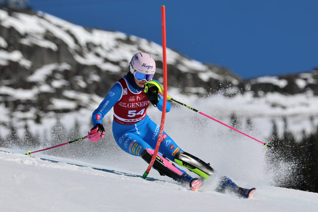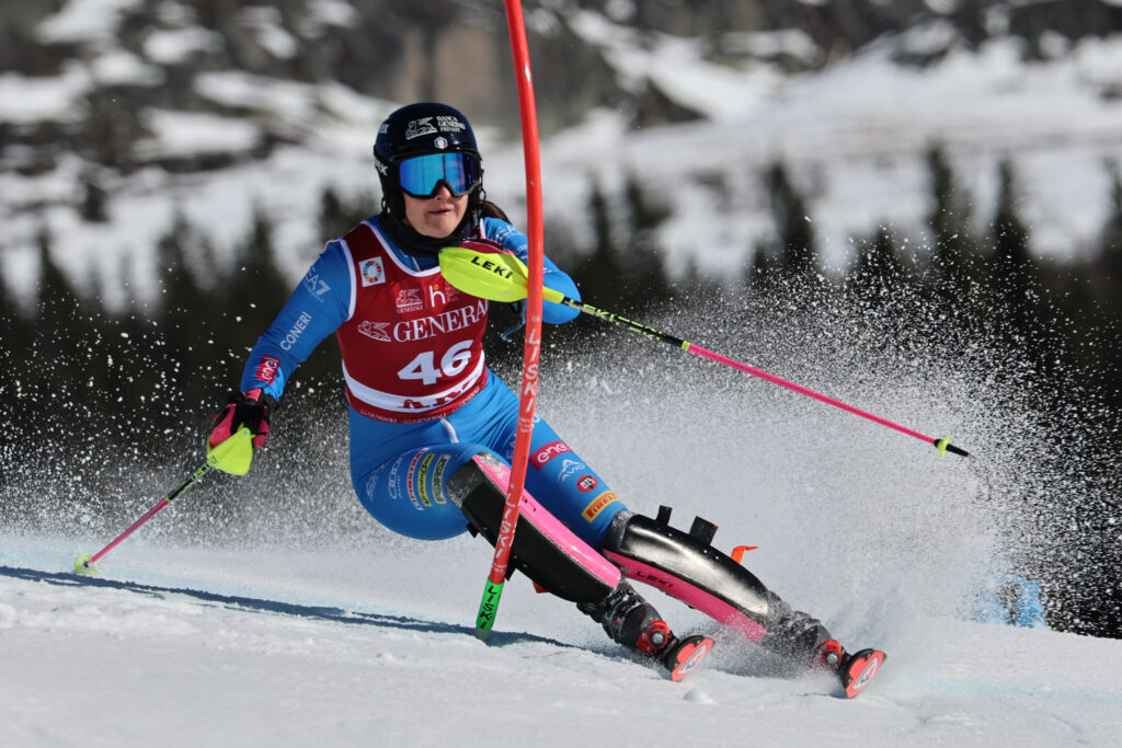 Nelle immagini dell’agenzia Pentaphoto le tre azzurre che hanno ottenuto punti nello Slalom della Coppa del Mondo femminile ad Aare