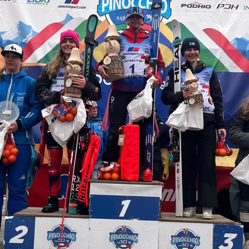 NELLE FINALI NAZIONALI DEL TROFEO PINOCCHIO SUGLI SCI TERZI POSTI PER BENEDETTA ROSA RANIERI NELLO SLALOM ALLIEVI ED EDOARDO CAIROLI NEL GIGANTE RAGAZZI