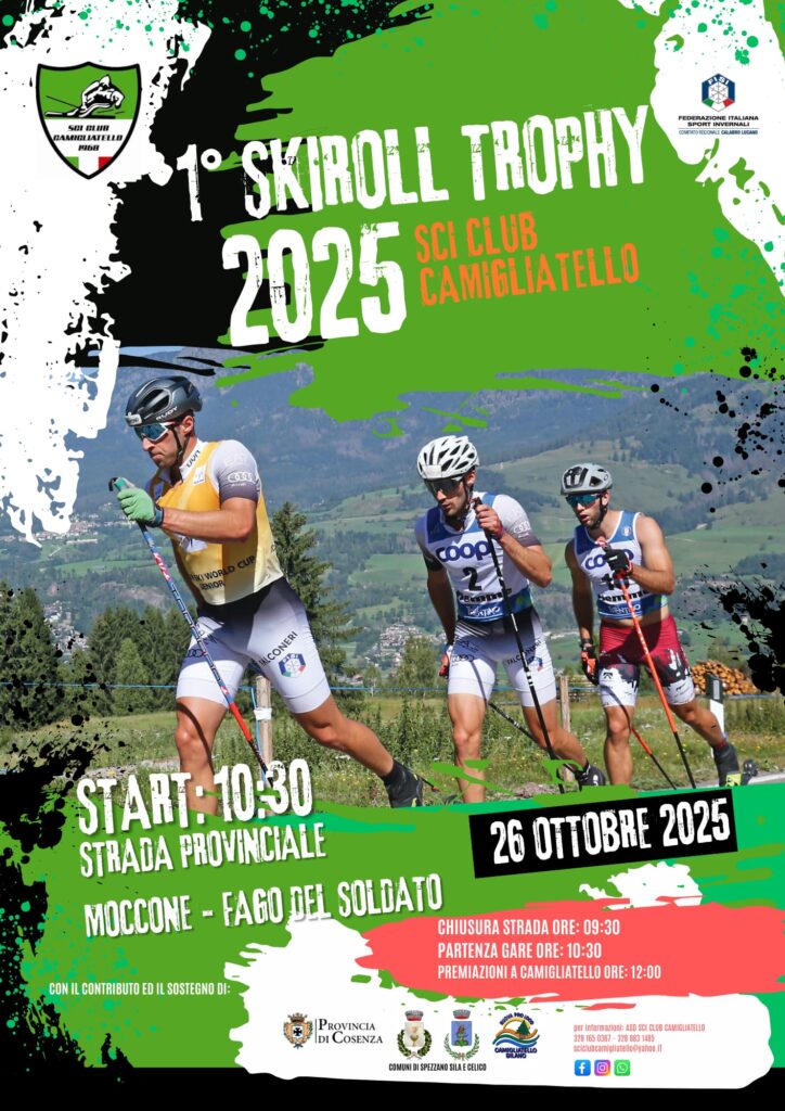 La stagione agonistica del Comitato FISI Calabro Lucano prosegue con il 1° Trofeo Sci Club Camigliatello, in programma domenica 26 ottobre lungo la strada provinciale SP 256, nel comune di Celico (Cs), con partenza alle 10:30 dalla località Moccone, a Spezzano della Sila, e arrivo a Fago del Soldato.