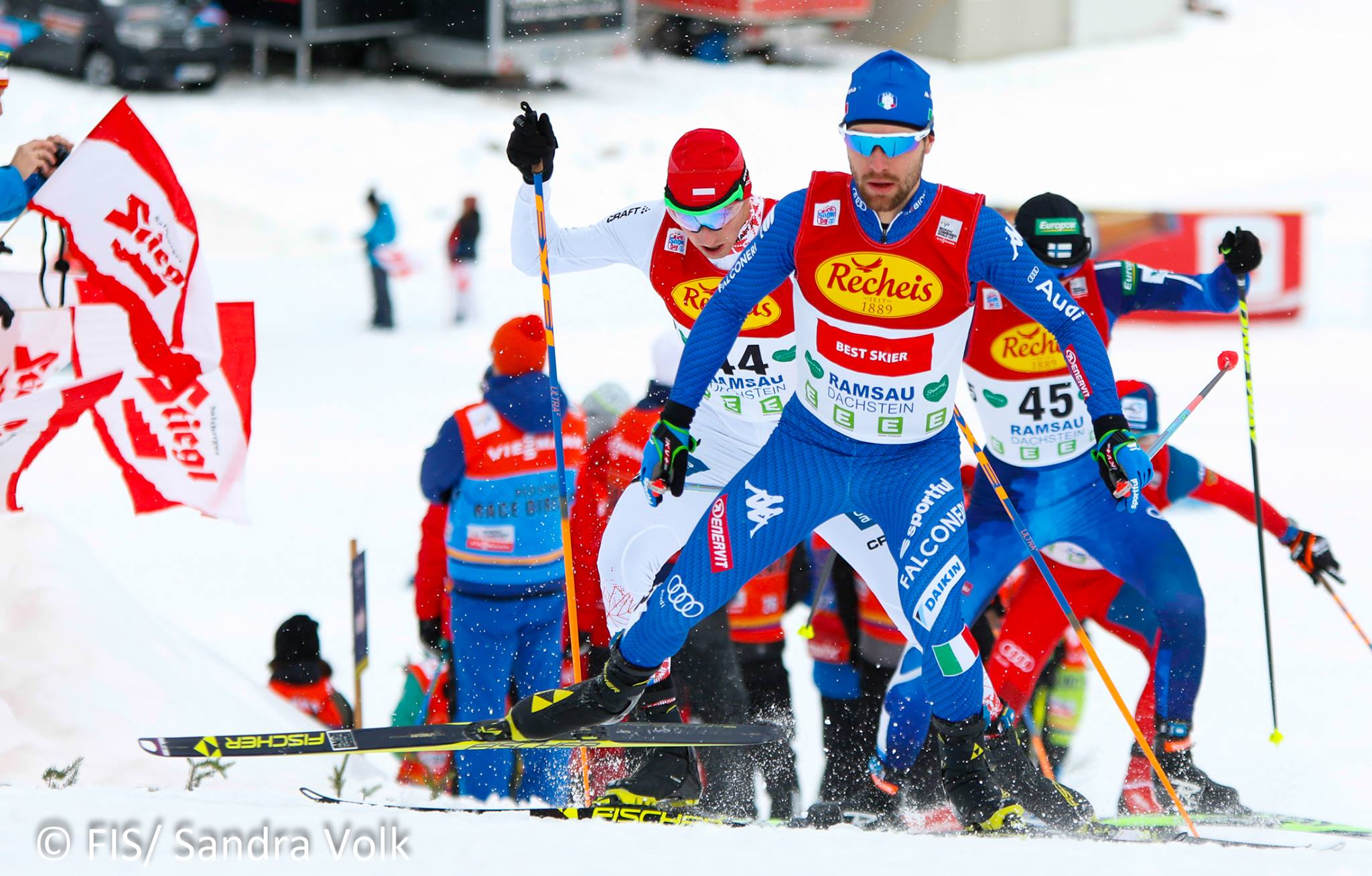 Il campione di Cercivento, partito 36° a 1’12” dalla vetta dopo il salto sul trampolino di Ramsau (Austria), con il solito prodigioso recupero sugli sci stretti è arrivato sui migliori, mancando il successo per soli 3 decimi.
