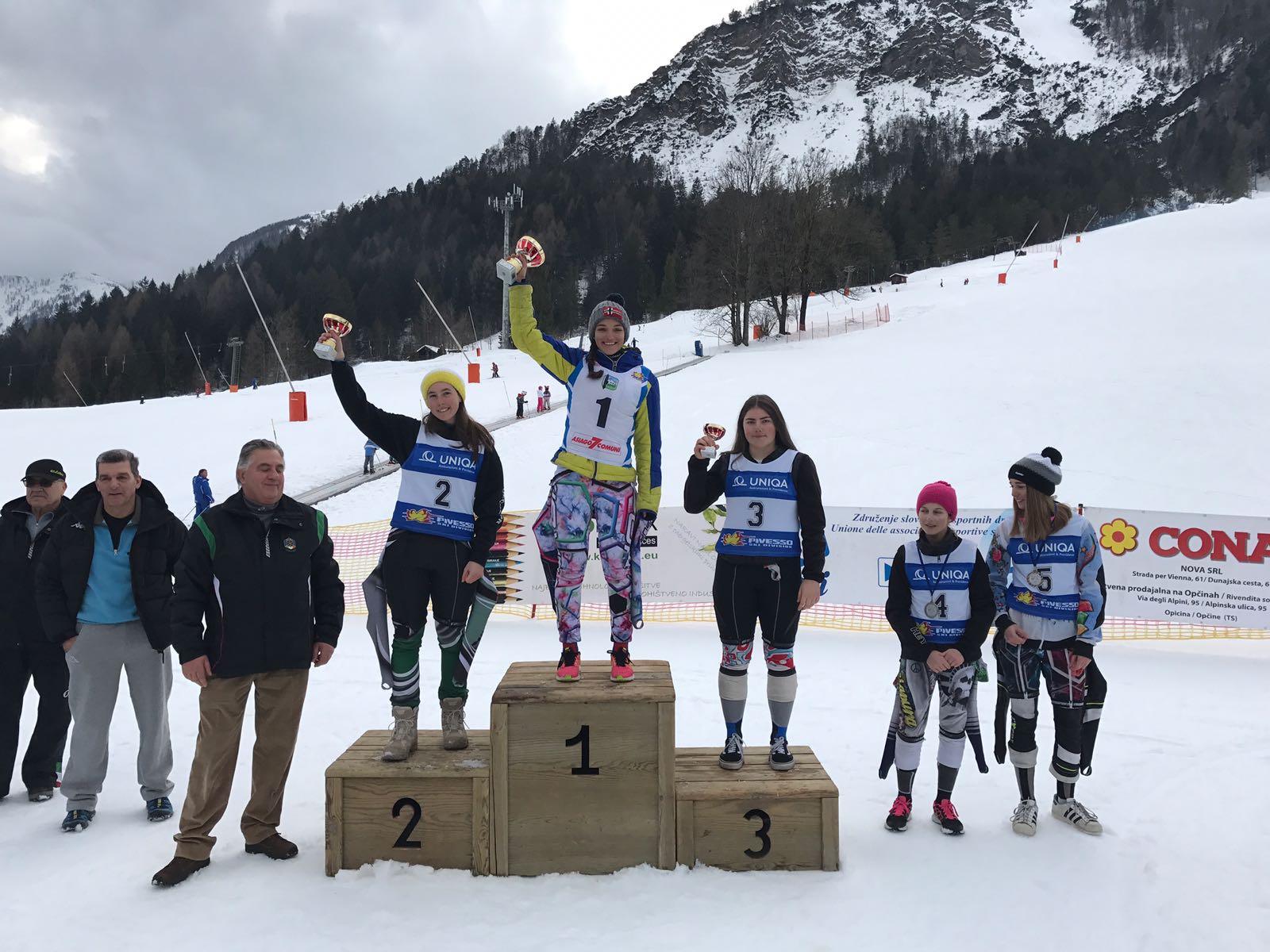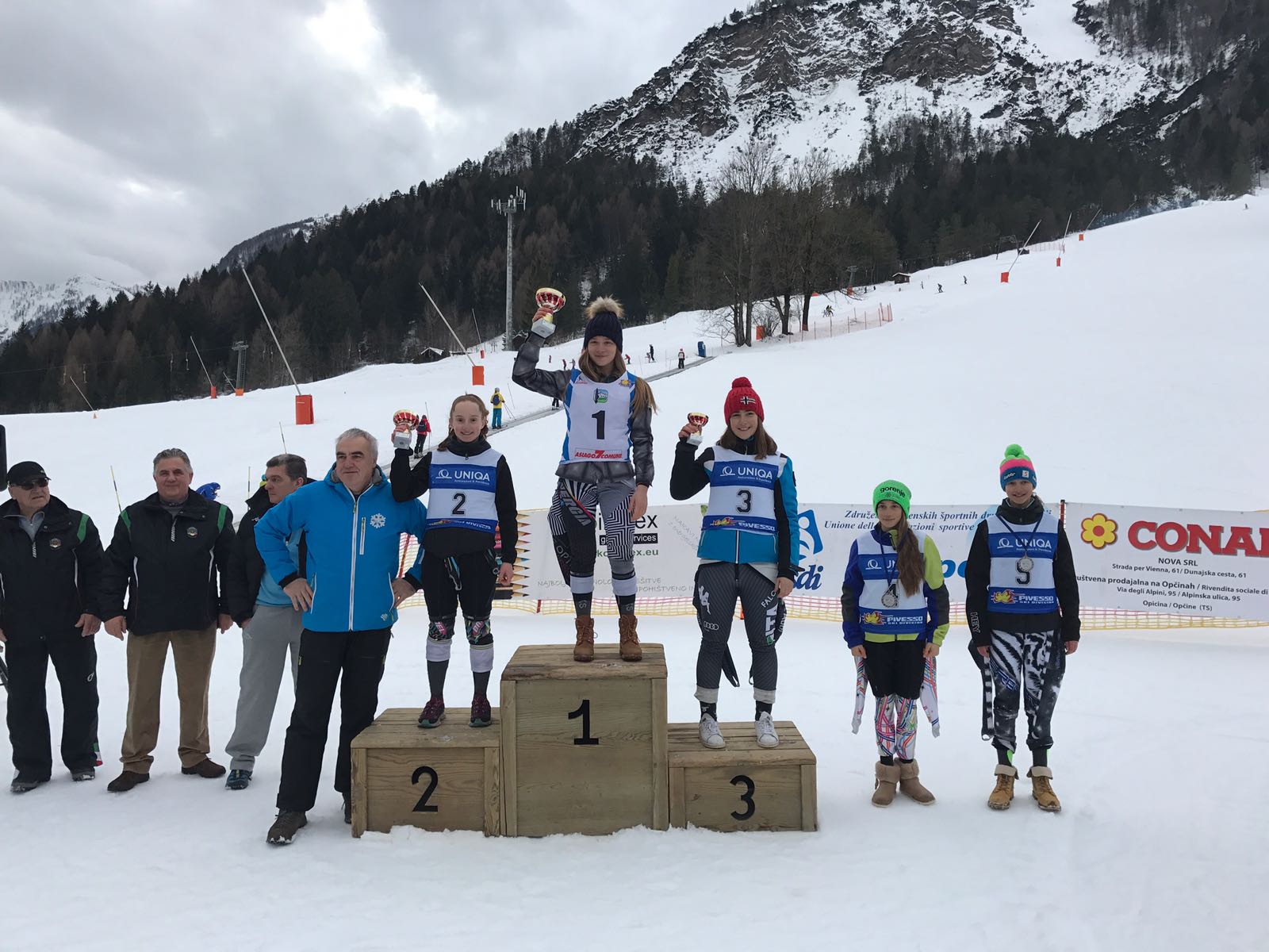 Fra le società si impone il Cimenti Sci Carnia davanti a SK Devin e SS Fornese (nella foto di copertina il podio).