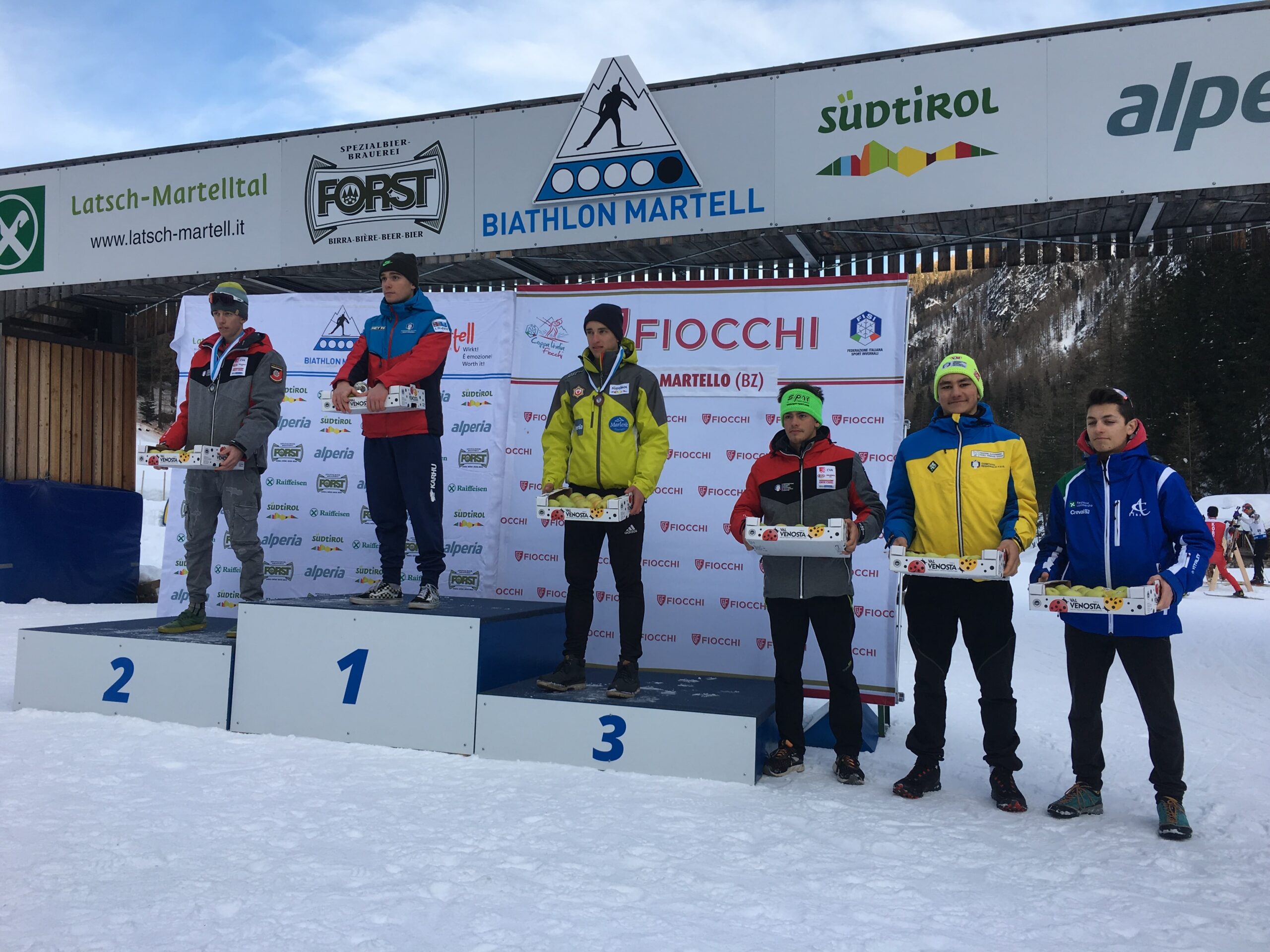 Nella 7.5 km Aspiranti maschile Mattia Piller Hoffer dei Camosci, ieri terzo, ha chiuso quinto (ottavo Pietro Pallober della Monte Coglians, nono in rimonta Nicolas Ribbi dei Camosci), mentre nella 10 km Giovani Fabio Cappellari della Fornese, esaltato per il podio in Coppa del Mondo del fratello Daniele, ha recuperato due posizioni con il secondo tempo di giornata conquistando anch’esso il terzo posto.