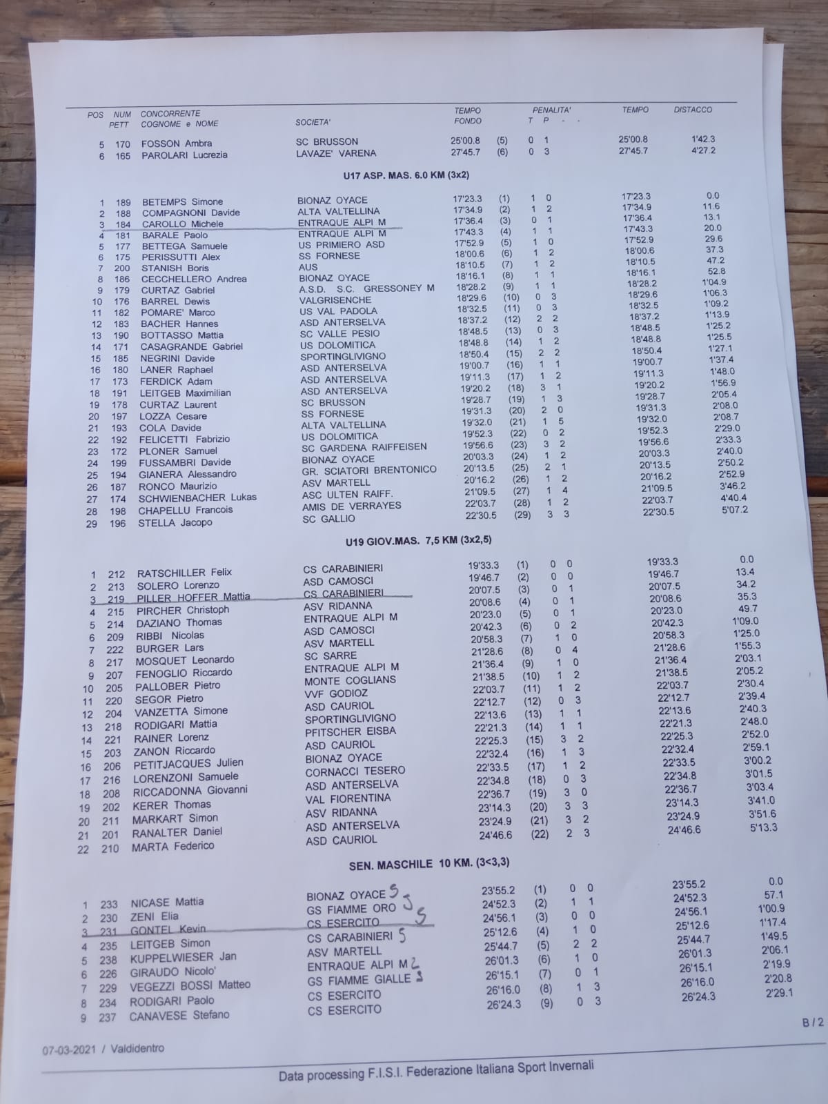 Un altro doppio podio FVG è arrivato nella 7.5 km Giovani maschile, con Lorenzo Solero dei Camosci secondo (0) e il compaesano del Cs Carabinieri Mattia Piller Hoffer teroz (1). Bene anche l’altro camoscio Nicholas Ribbi, sesto (1), mentre Pietro Pallober della Monte Coglians si è piazzato decimo (3).