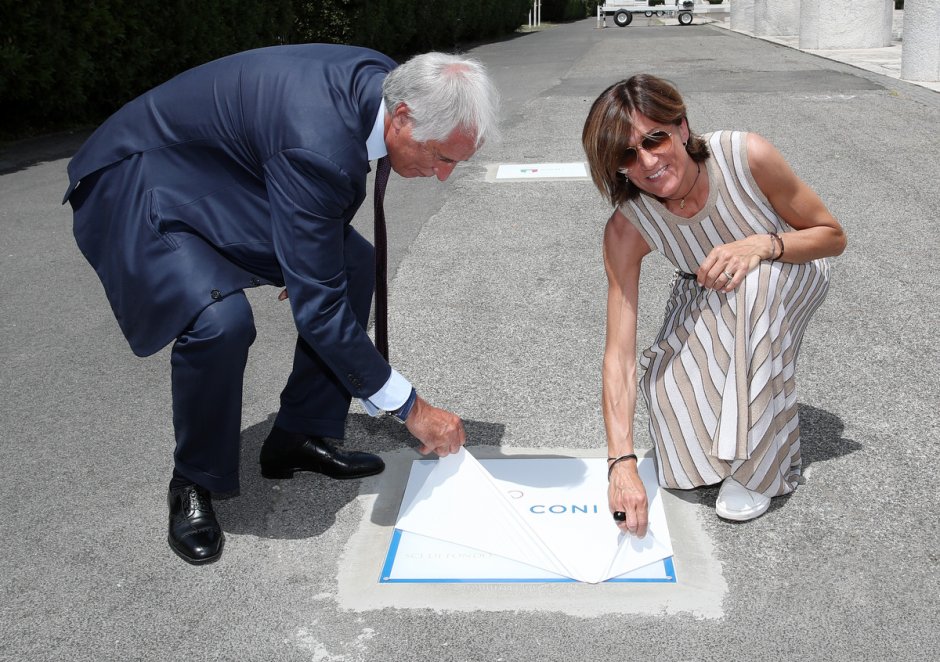 Il Presidente del Coni Giovanni Malagò ha ufficialmente scoperto le mattonelle della Walk of Fame Coni, al Foro Italico di Roma.