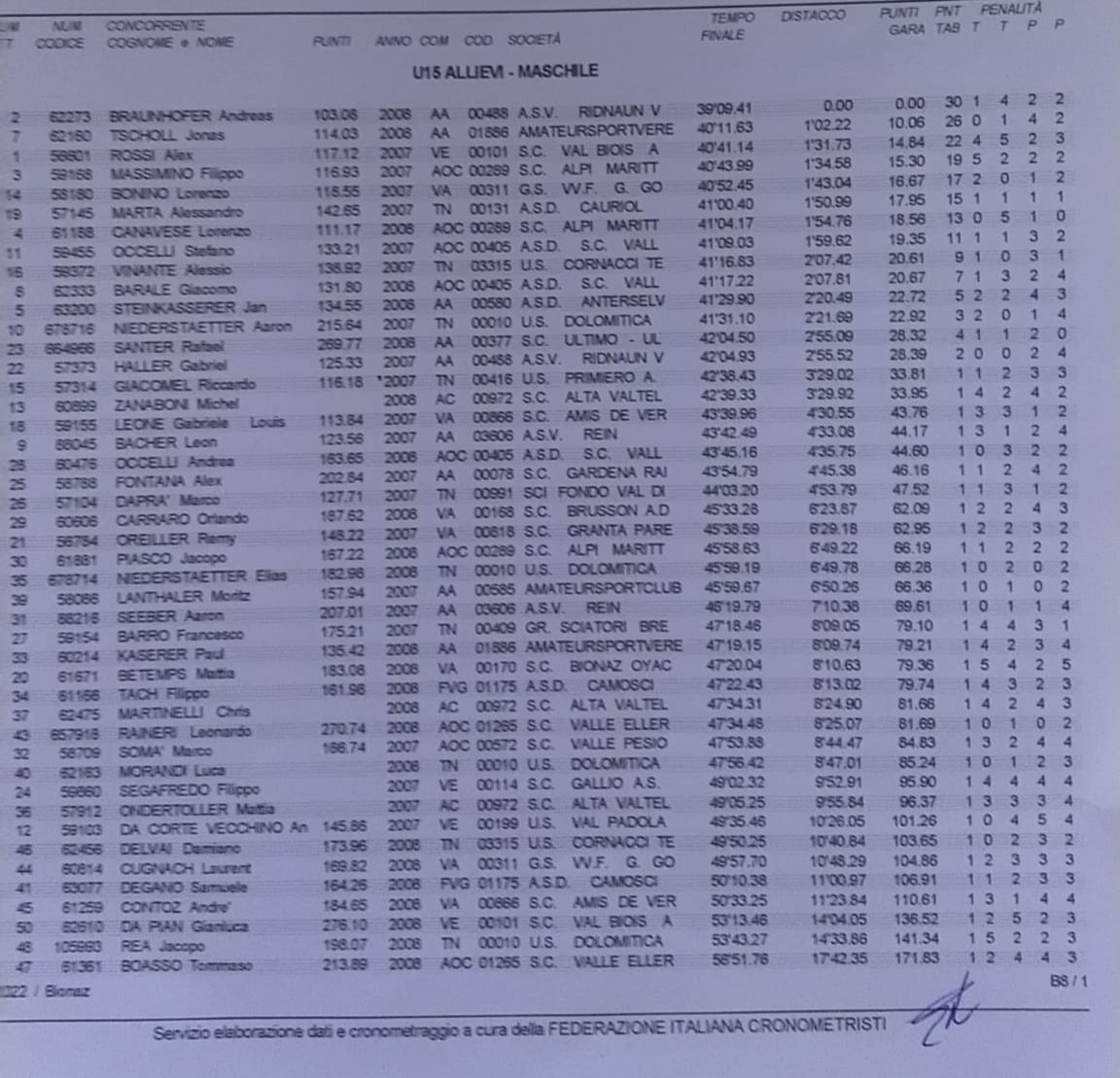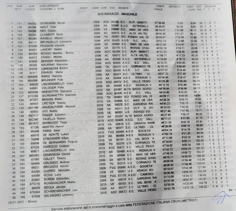 Nella prova Allievi maschile il primo FVG è Filippo Tach dei Camosci, 34°.