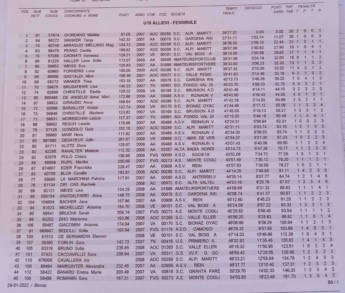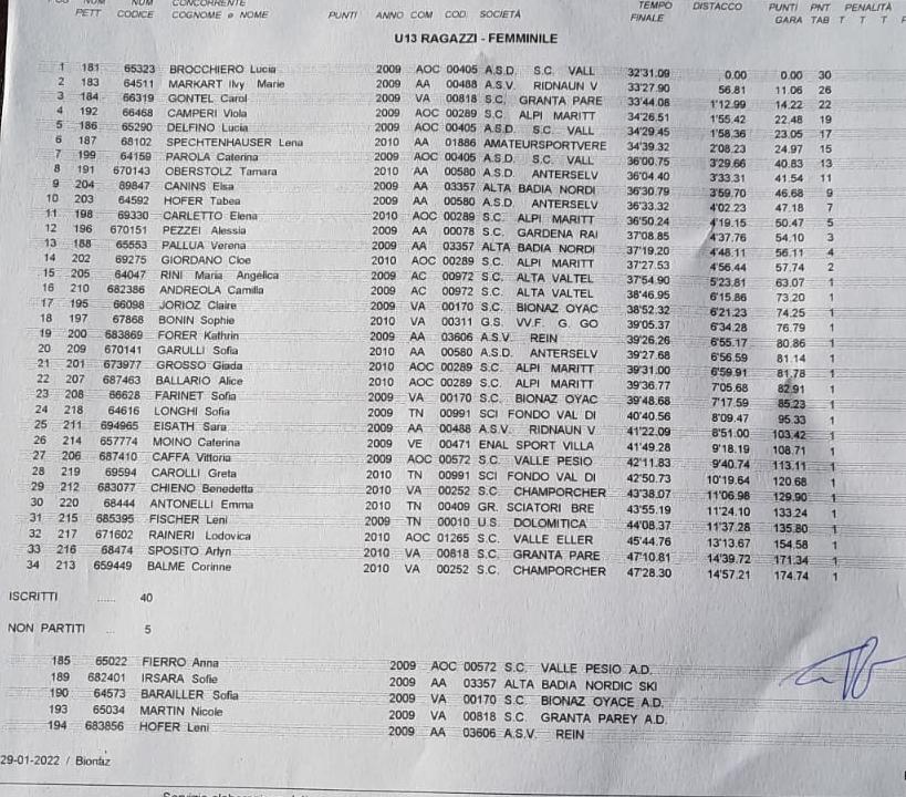 Nelle Allieve bella rimonta di Chiara Polo della Fornese, 24a davanti a Marika Rupil dei Camosci, 25a.