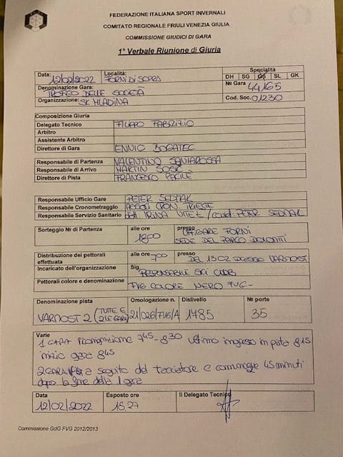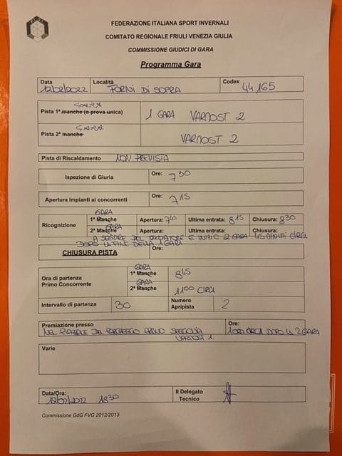 Proponiamo le start list, il Programma Gara e il Verbale della Riunione di Giuria.