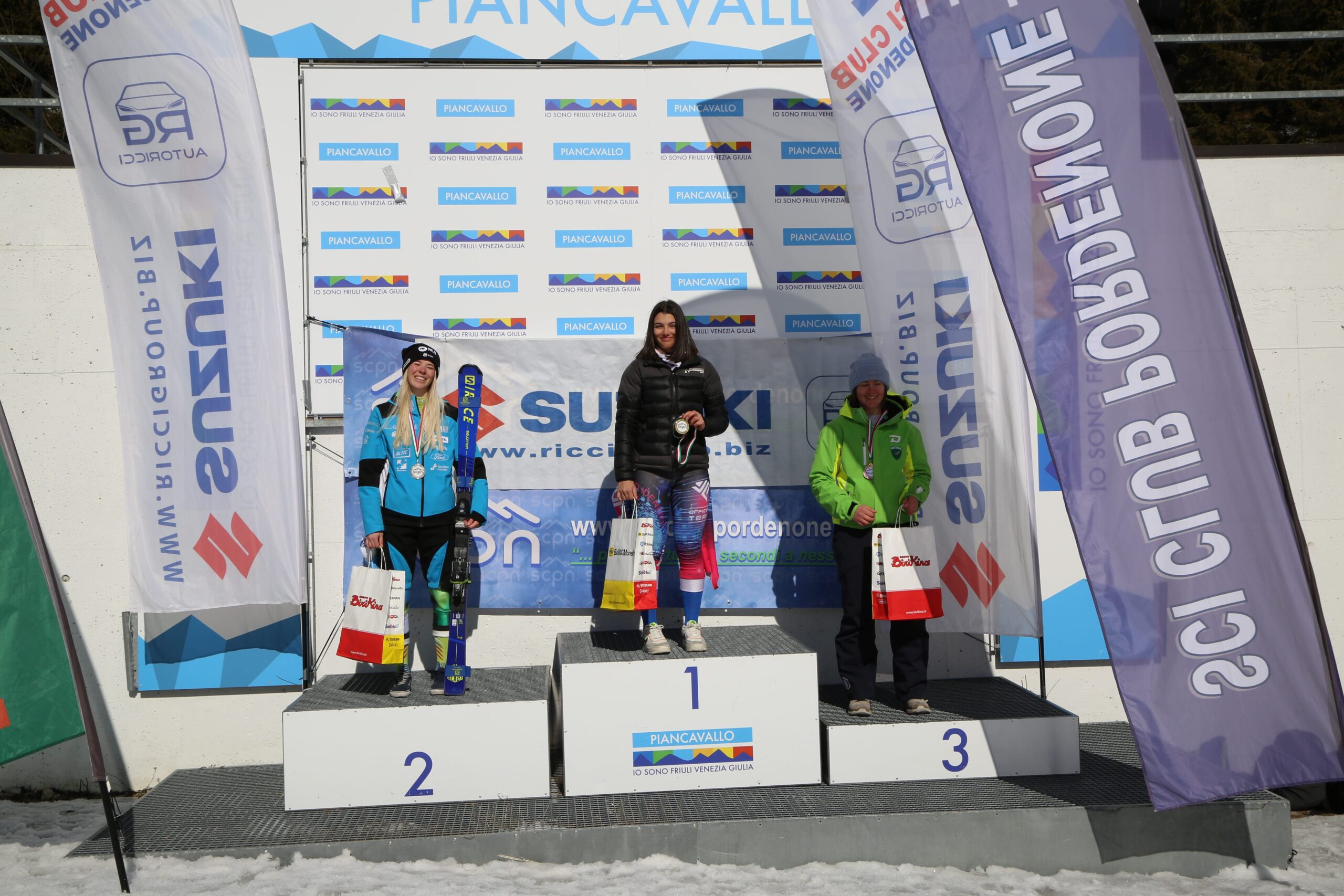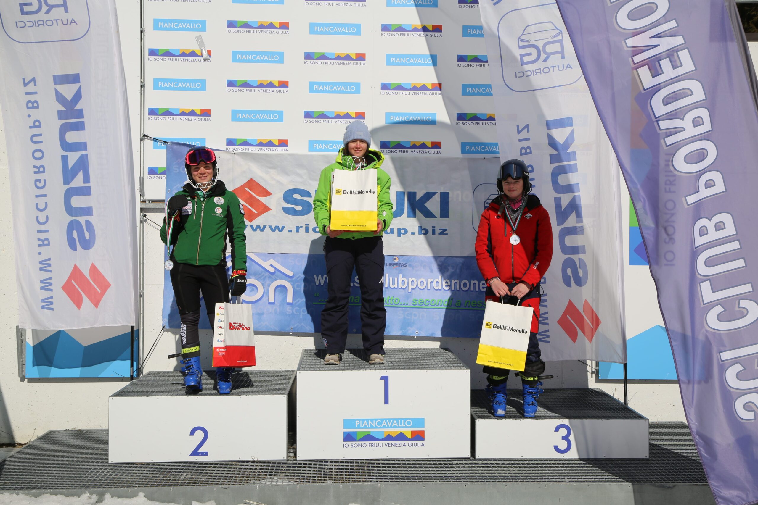 Tra le ragazze dominio assoluto di Caterina Sinigoi, che infligge distacchi abissali facendo meglio in entrambe le manche di più di un secondo rispetto all’avversaria più vicina. Al traguardo la diciottenne del Devin avrà un vantaggio di 2″66 sulla seconda, la slovena Vida Ravnikar, e di 3″49 sulla terza, Silvia Belli. Per Caterina è il quarto successo stagionale