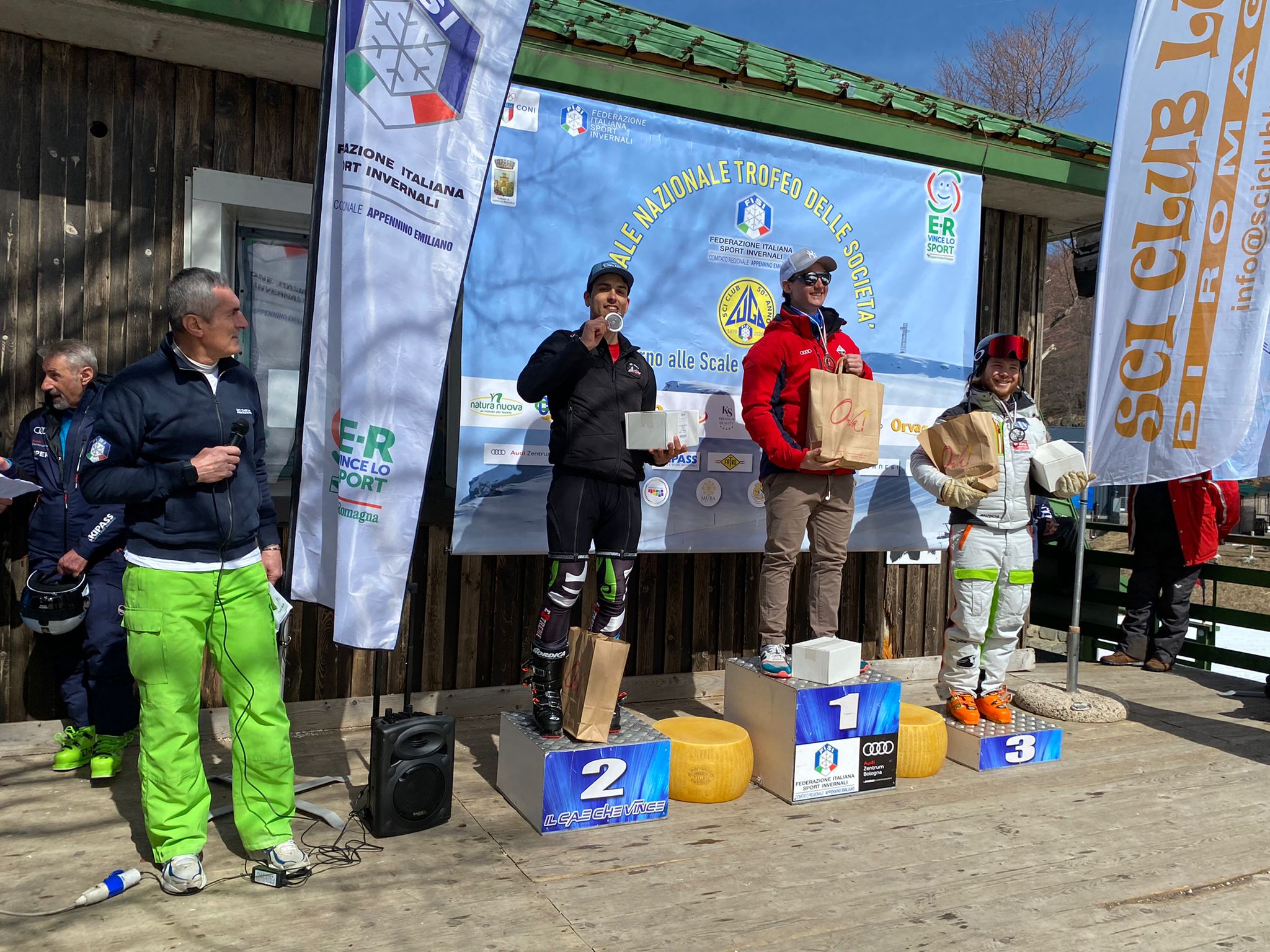 - A Corno alle Scale anche il presidente della FISI Roda, in giacca rossa con alla sua destra il vicepresidente della FISI FVG Tancredi Del Mestre