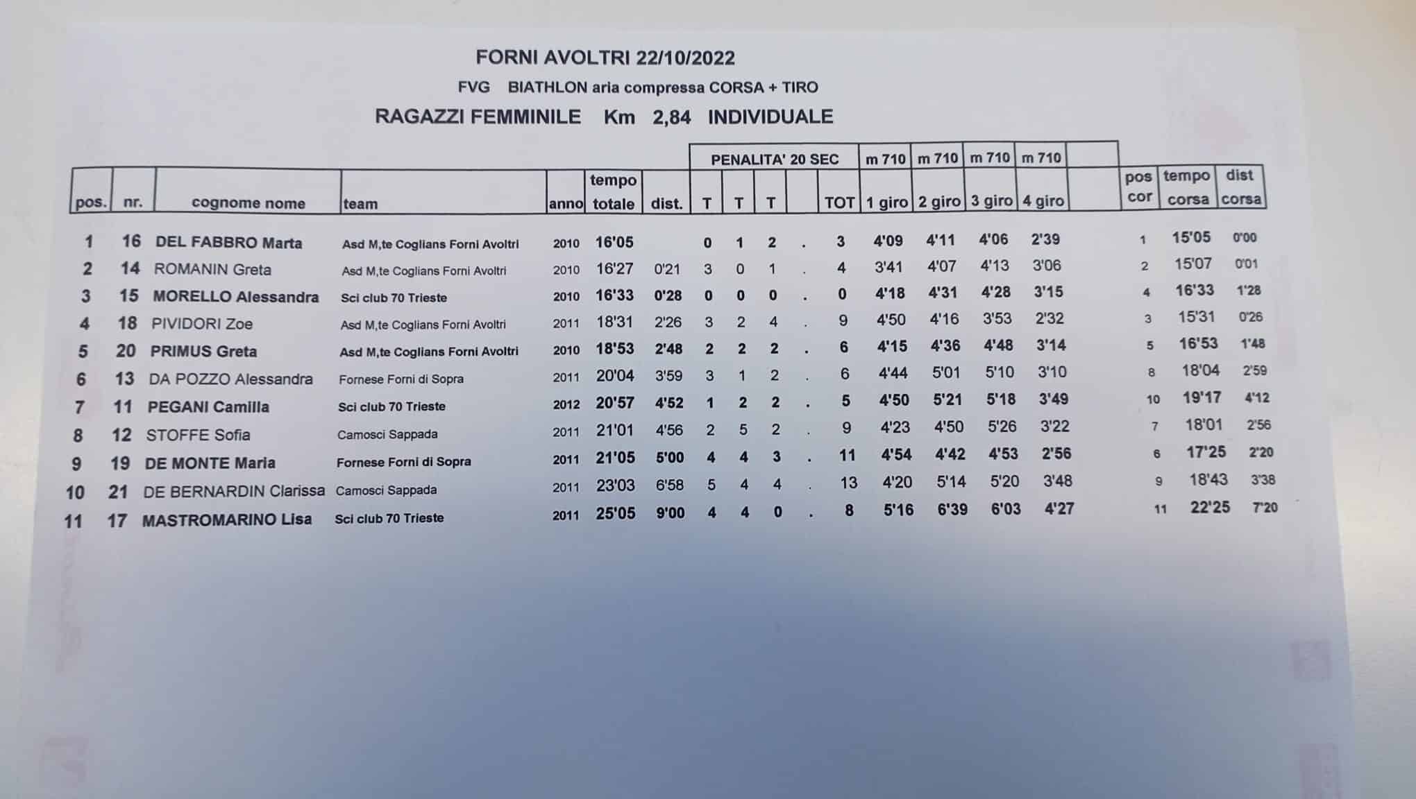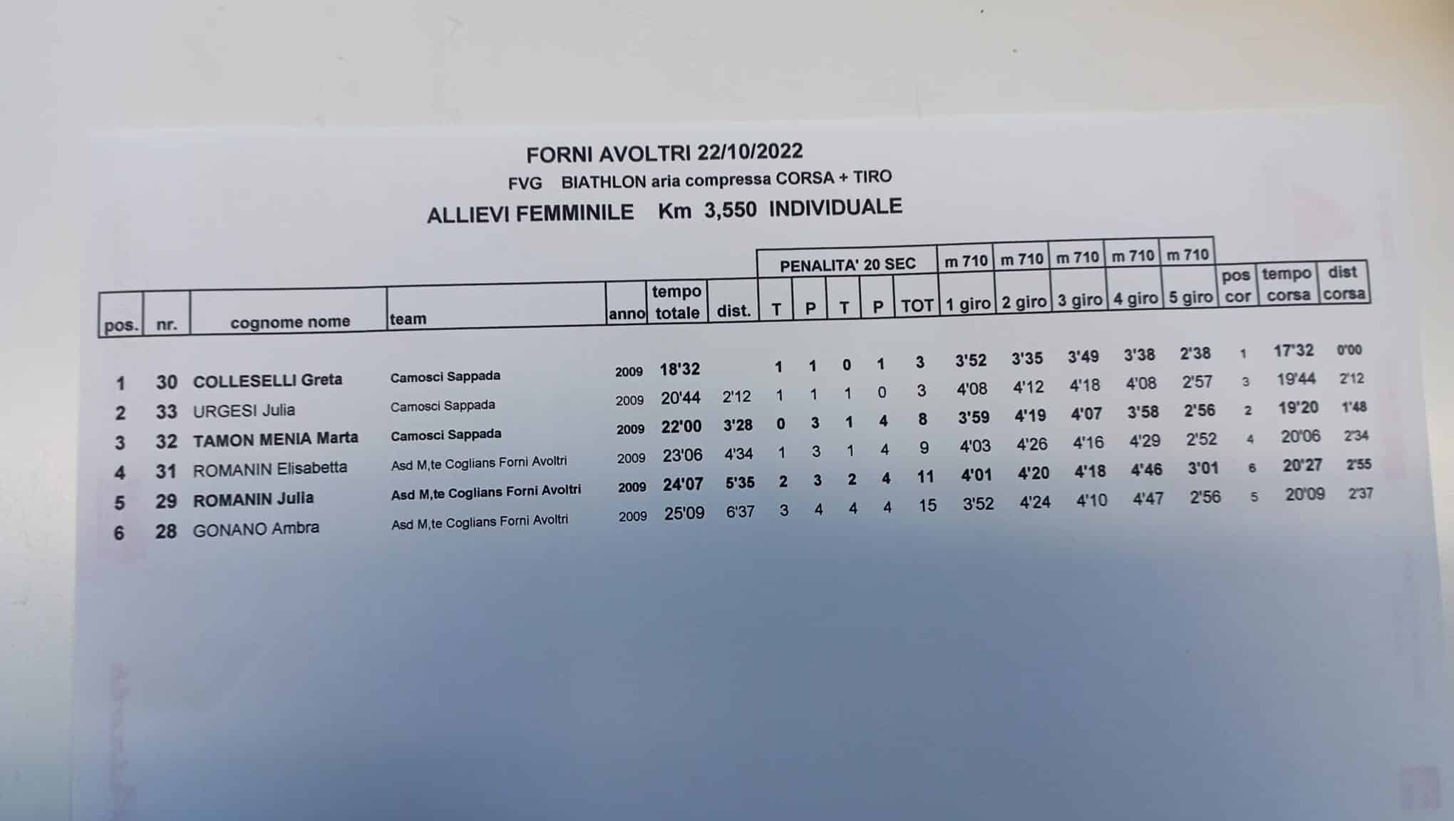 Nelle Allieve Greta Colleselli dei Camosci precede due compagne di squadra, Julia Urgesi a 2’12” e Marta Menia Tamon a 3’28”.
