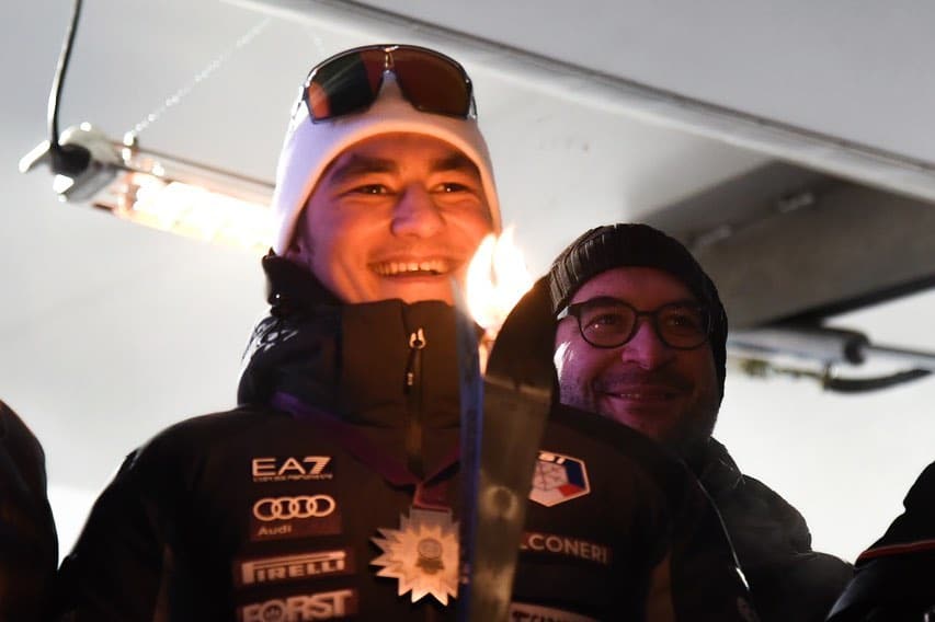 Ad accendere il braciere il biathleta Mattia Piller Hoffer