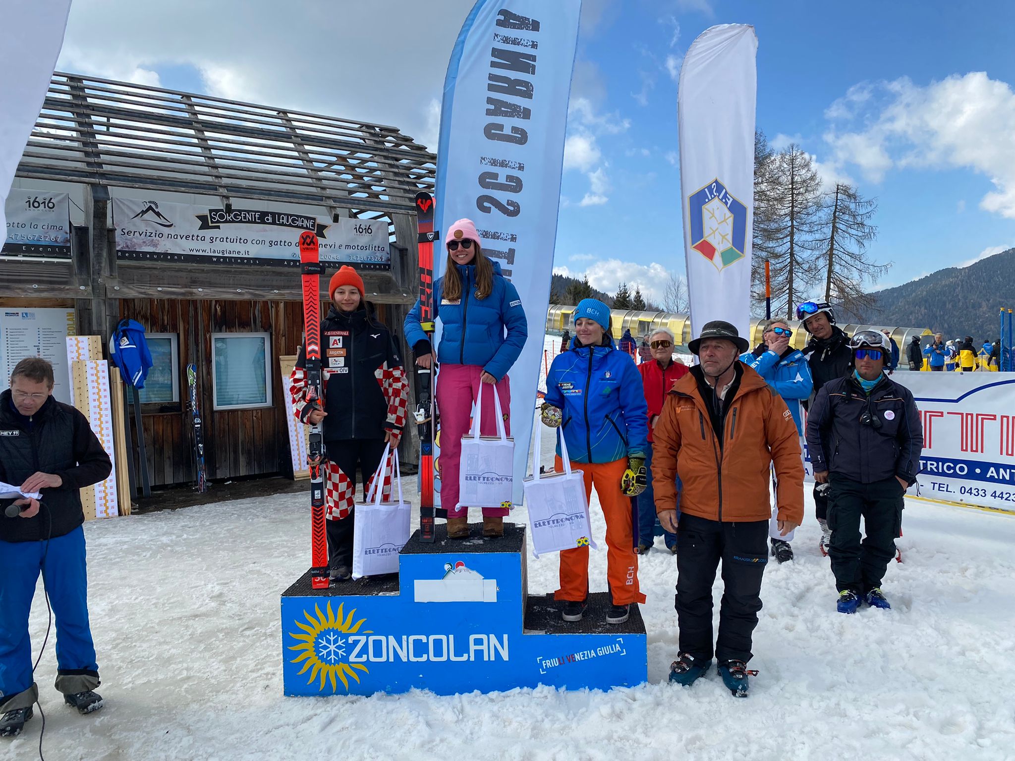 Nella prova femminile arriva il primo podio FIS in carriera di Ginevra Quinz della squadra FISI FVG, tesserata con il Bachmann Sport College, terza a 0″61 dalla vincitrice, la spagnola Gergina Torrago, e a 0″49 dalla croata Dora Ljutic. Quest’ultima è anche la migliore Aspiranti davanti alla ragazza allenata da Francesco Ciot.