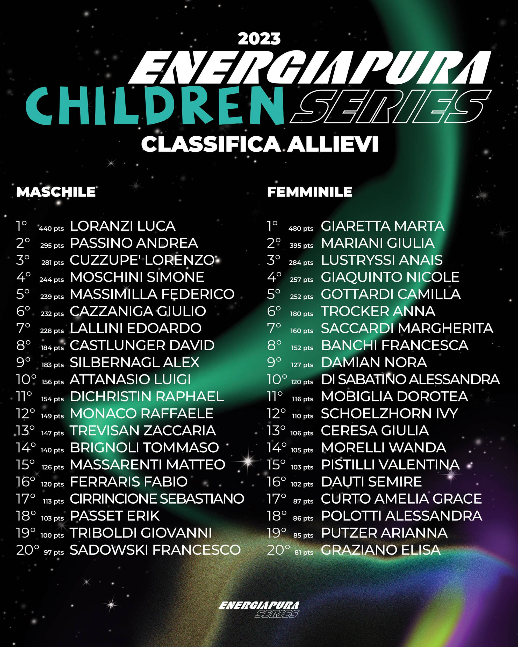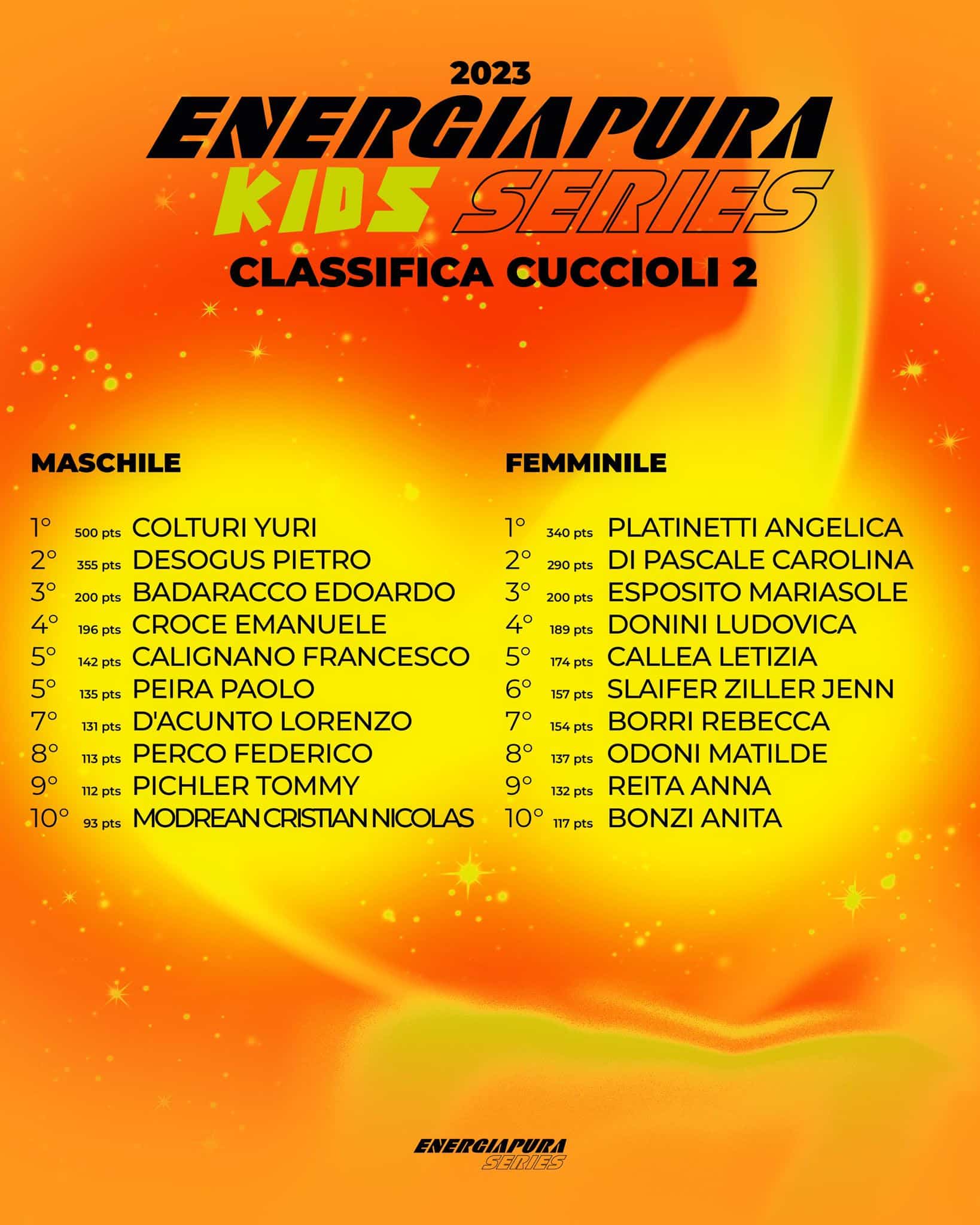 Nelle Cucciole 2 quinta Letizia Callea e ottava Matilde Odoni, entrambe del 70, club che ottiene le medesime posizioni anche nella corrispondente categoria maschile rispettivamente con Francesco Calignano e Federico Perco.
