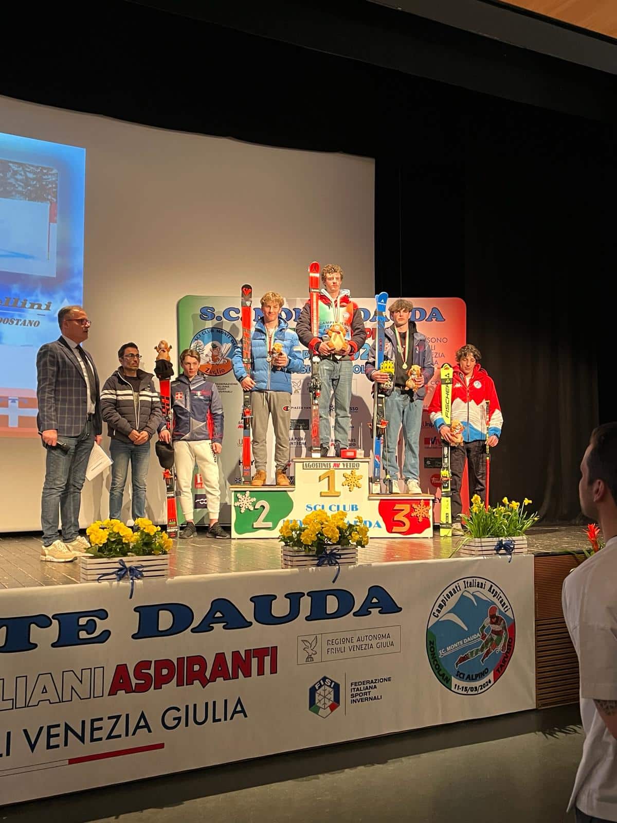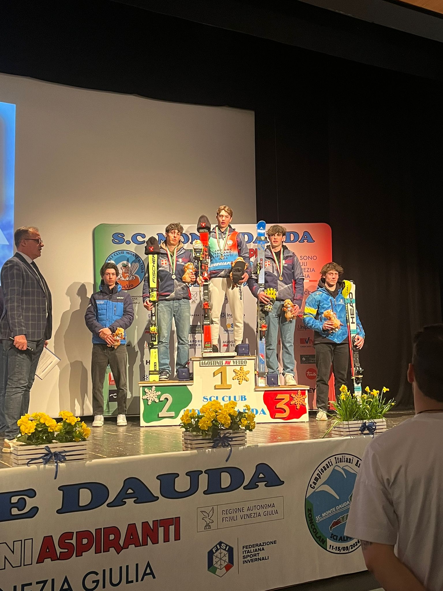 Nel gigante maschile successo in rimonta per Scesa (Sc Radici Group). Secondo a metà gara, il diciassettenne di Clusone ha superato nella manche finale il valdostano Peter Corbellini (Club de Ski Valtournenche) che lo precedeva a metà gara: 2’15″34 il tempo complessivo di Scesa che ha preceduto Corbellini di soli due centesimi di secondo, con Tomas Deambrogio (Sc Sauze d’Oulx) in terza piazza a 0″64, per confermarsi sul podio tricolore di tutte le quattro prove sin qui disputate tra Sella Nevea e lo Zoncolan.