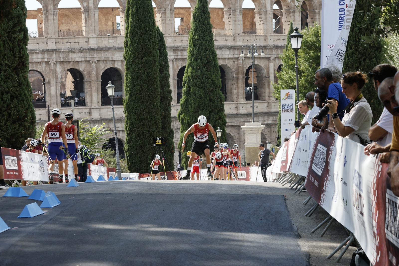 Le vestigia della Roma Imperiale, a pochi passi dalla Domus Aurea e dal Colosseo, hanno fatto da cornice alle spettacolari gare sprint della terza tappa della Coppa del Mondo di Skiroll che per la prima volta è approdata nella Capitale. Oltre 100 atleti si sono dati battaglia nelle quattro categorie Junior e Senior maschile e femminile.