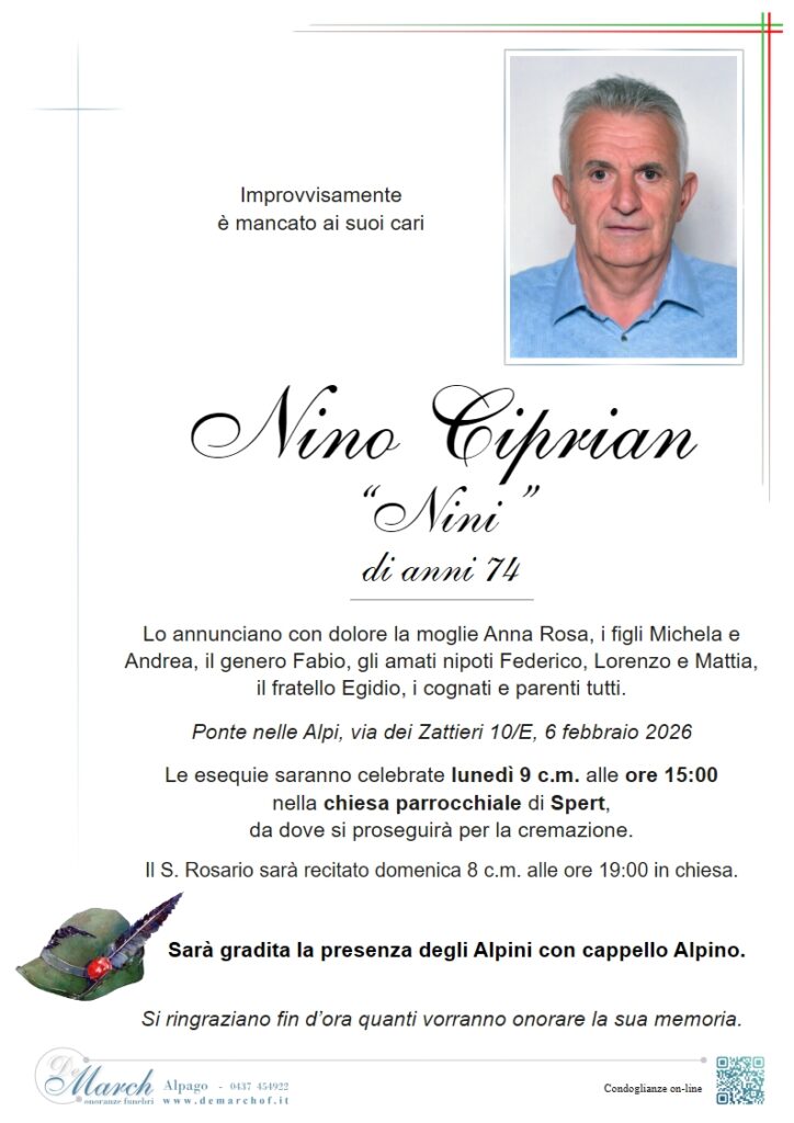 Lo sci veneto piange la scomparsa di Nini CiprianPer diversi anni Nini è stato il responsabile dei giudici del nostro comitato...